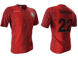 Choose between 35 designs in the 3D Designer; find your favorite color combination and place your logos, crests and emblems. The player’s name, number and team name can all be created and positioned as you want. When you’re happy with the design, you can put the order in your shopping basket for production!
